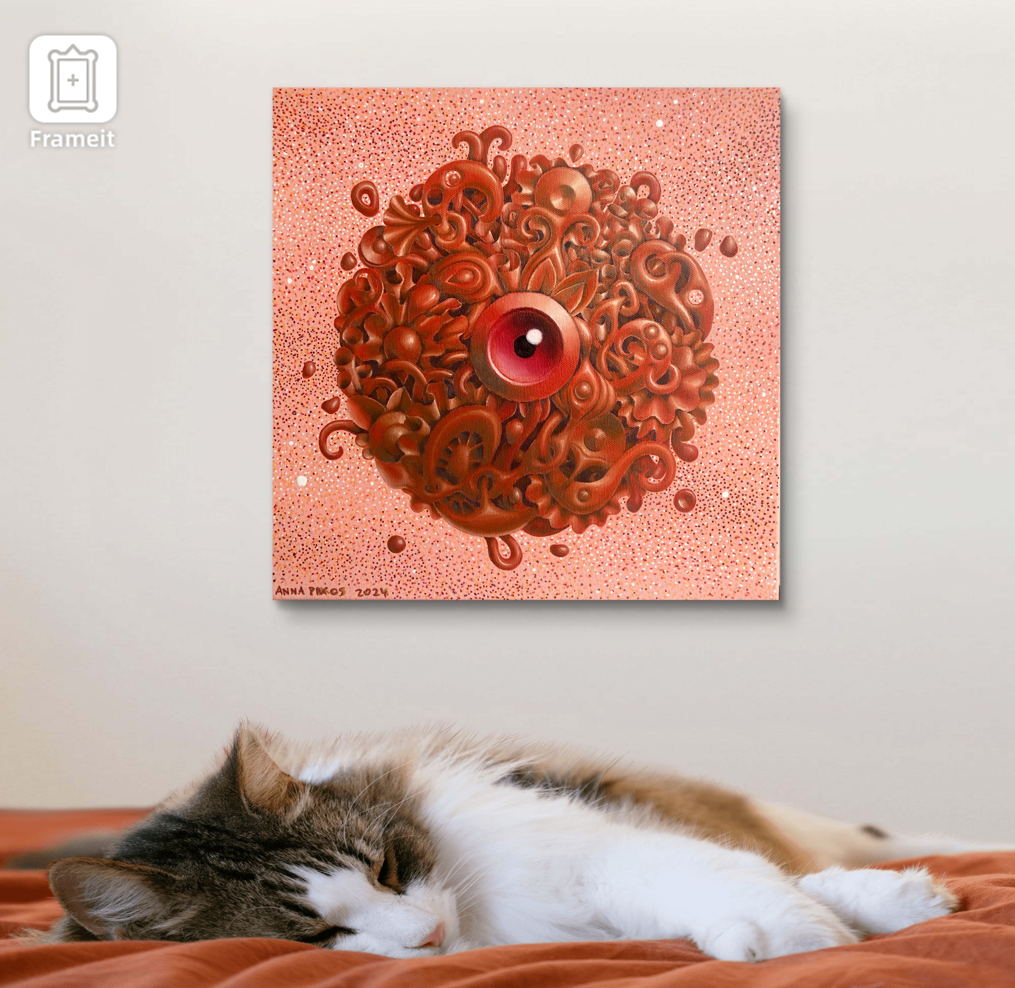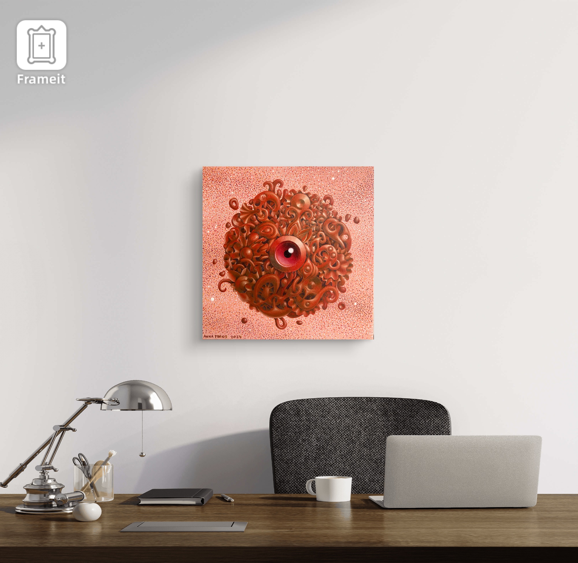 This one-of-a-kind piece features an abstract schema that evokes both biological growth and cosmic patterns—suggesting unseen forces and latent energy within ordered forms. The result is a visually striking, emotionally evocative work that commands attention regardless of size.